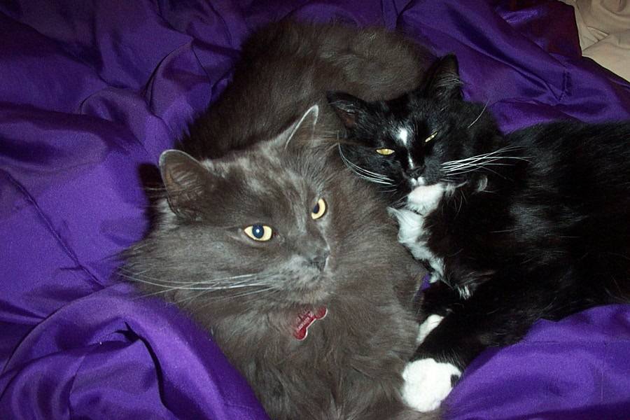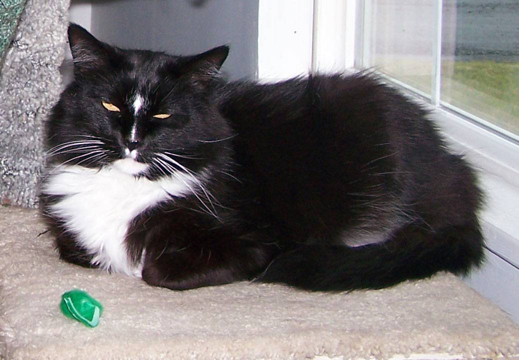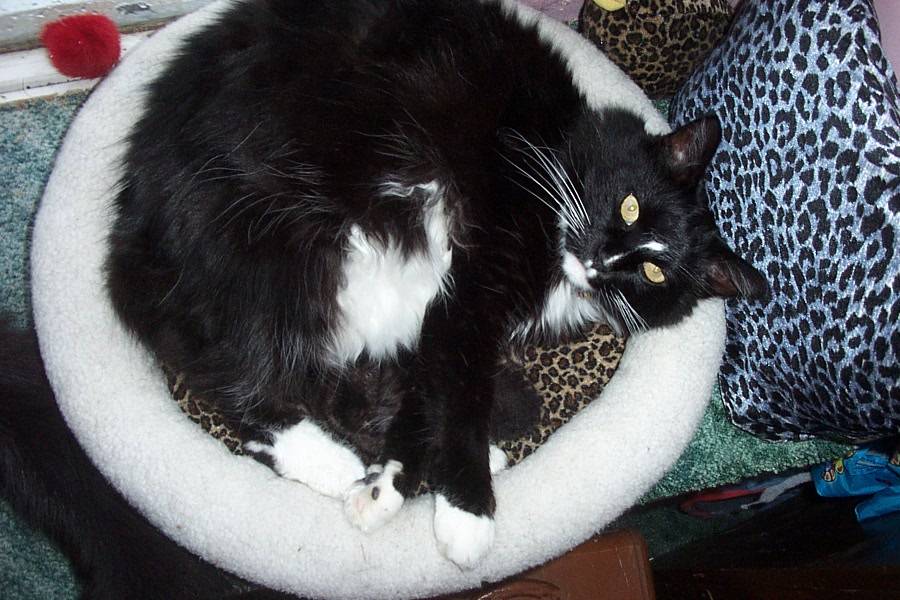 Alex came to live with us in 1997 when he was just a little over a year old, he was found by a family friend wandering the alleys by her downtown home, he is a friendly and loving cat from the minute he walked into our lives – he has never changed, and he is always a good friend to his brother cats – even providing some free grooming for them now and then!!!