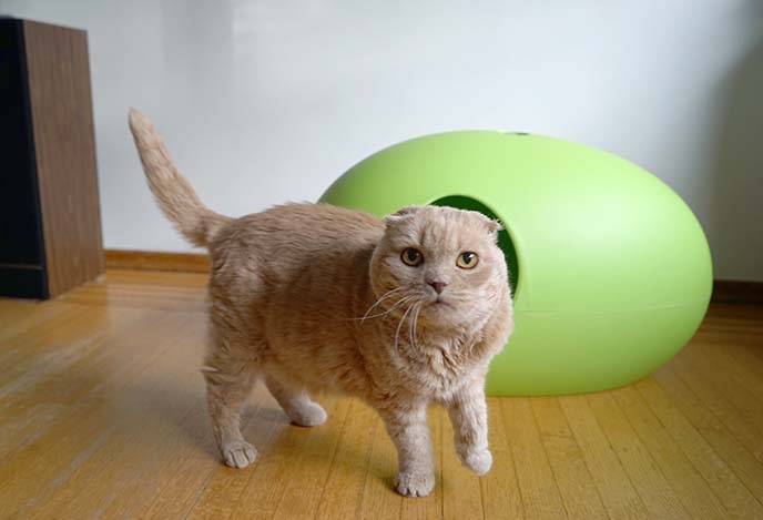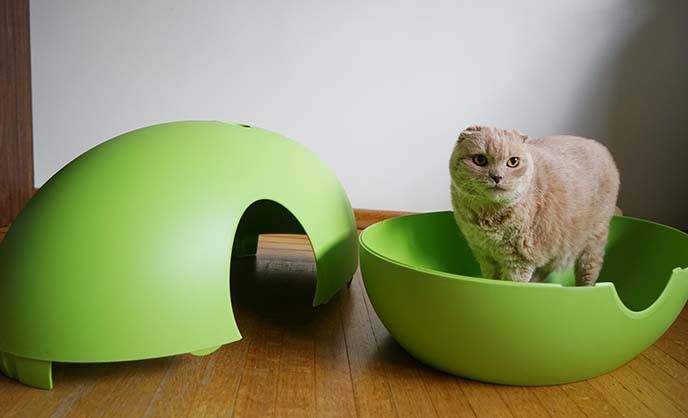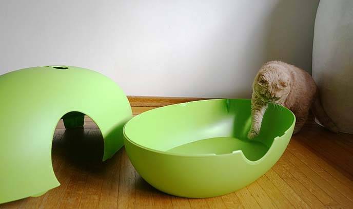 That’s a cool litter box. Unfortunately, we don’t like covered boxes…so it’s not for us…but we bet other kitties would like it.