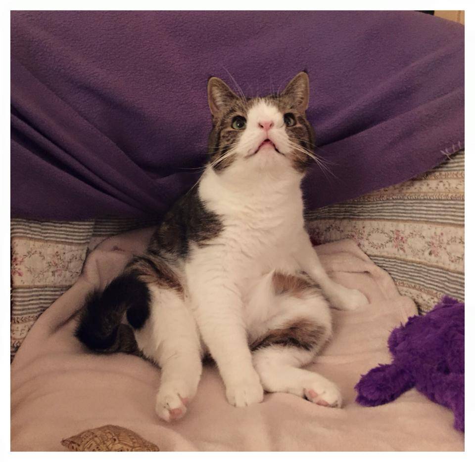 Monty is for sure one of a kind! He is extremely cute looking and his personality is just as fantastic as one would expect it to be by his adorable face. He’s a playful little fellow who loves attention and he’s always on the look out for someone to snuggle with him. He prefers to sleep by our side, and wherever we go and sit, he will follow and sit on our lap. He is also not shy at all. He loves to meet other cats and dogs and is never aggressive towards anyone. He is very curious! Even at the vet he holds his tail high and goes on adventures. When we are at the waiting room at the vet, we don’t need to keep him in his carrying case. He just sits in our arms completely relaxed looking around. So he is definitely a sweet little fellow. Though he has some difficulties, as you may already know. Due to his chromosome defects, his bladder sometimes leaks in his sleep. It is not a problem to us since it’s just some few drops and it only happens 2-3 times a month.