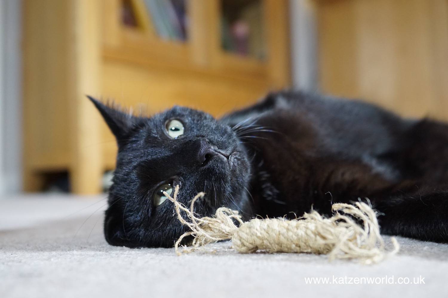 On another note, that’s a great size for a kitty string toy, and bonus for being environmentally sound and a healthy plaything, to boot.