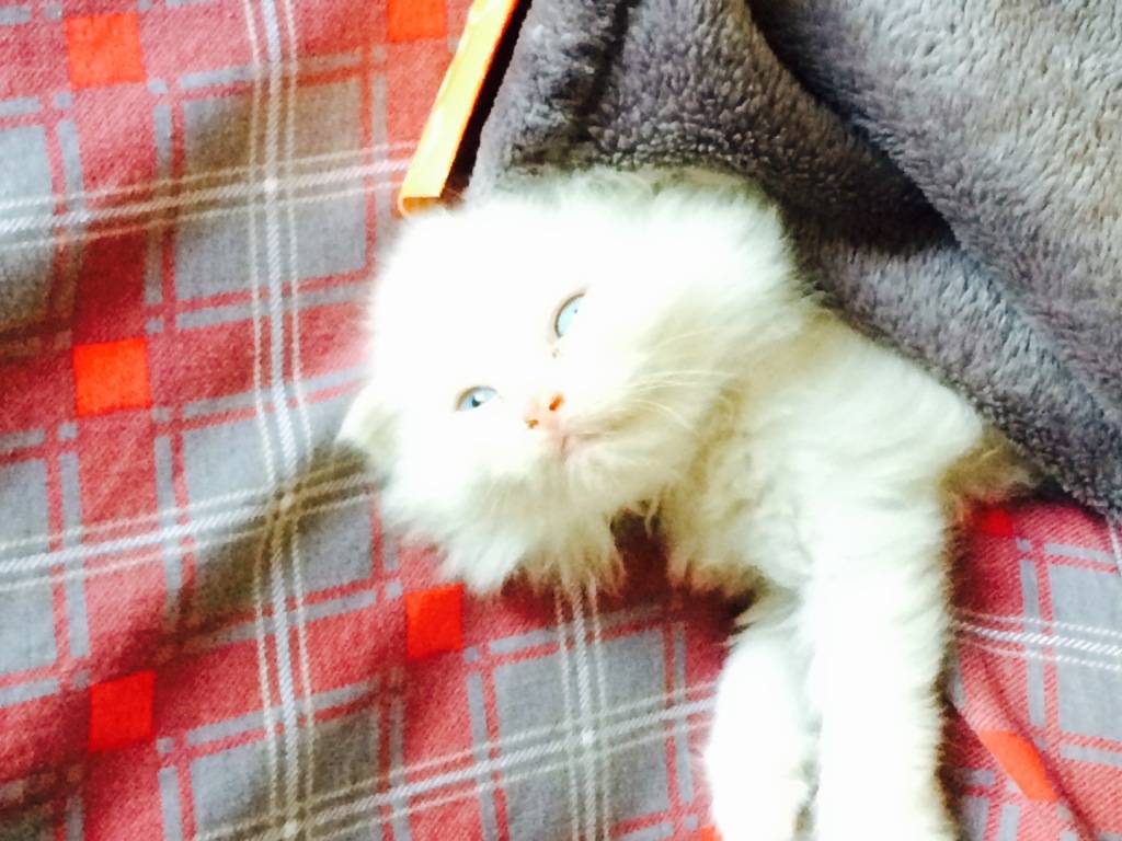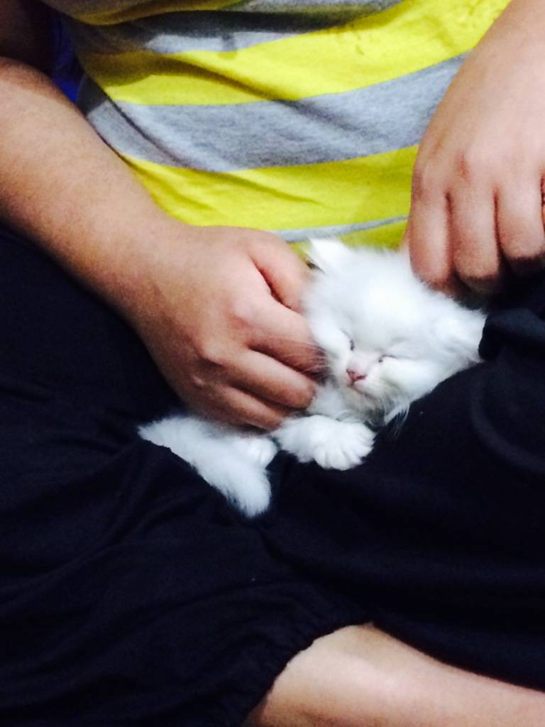 But Snowy is amazingly brave. My beautiful, blue-eyed Persian baby has had more injections, medicines and care than most kittens of his age. Yet, he manages to be happy, play with my sister and sit on my lap as I type this.