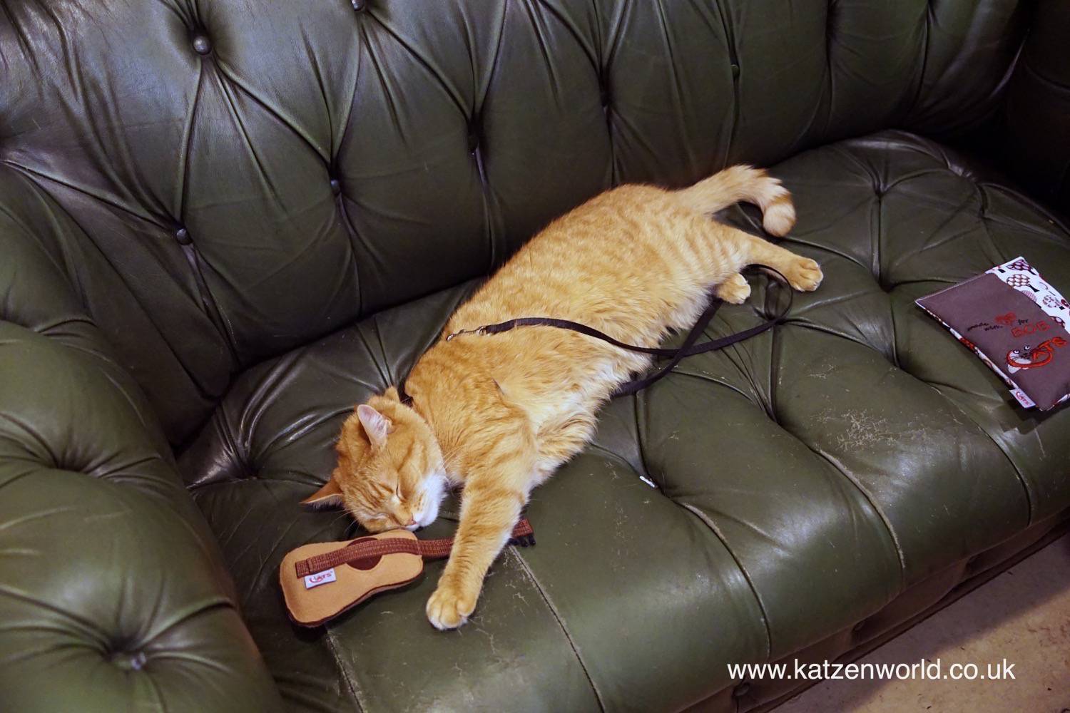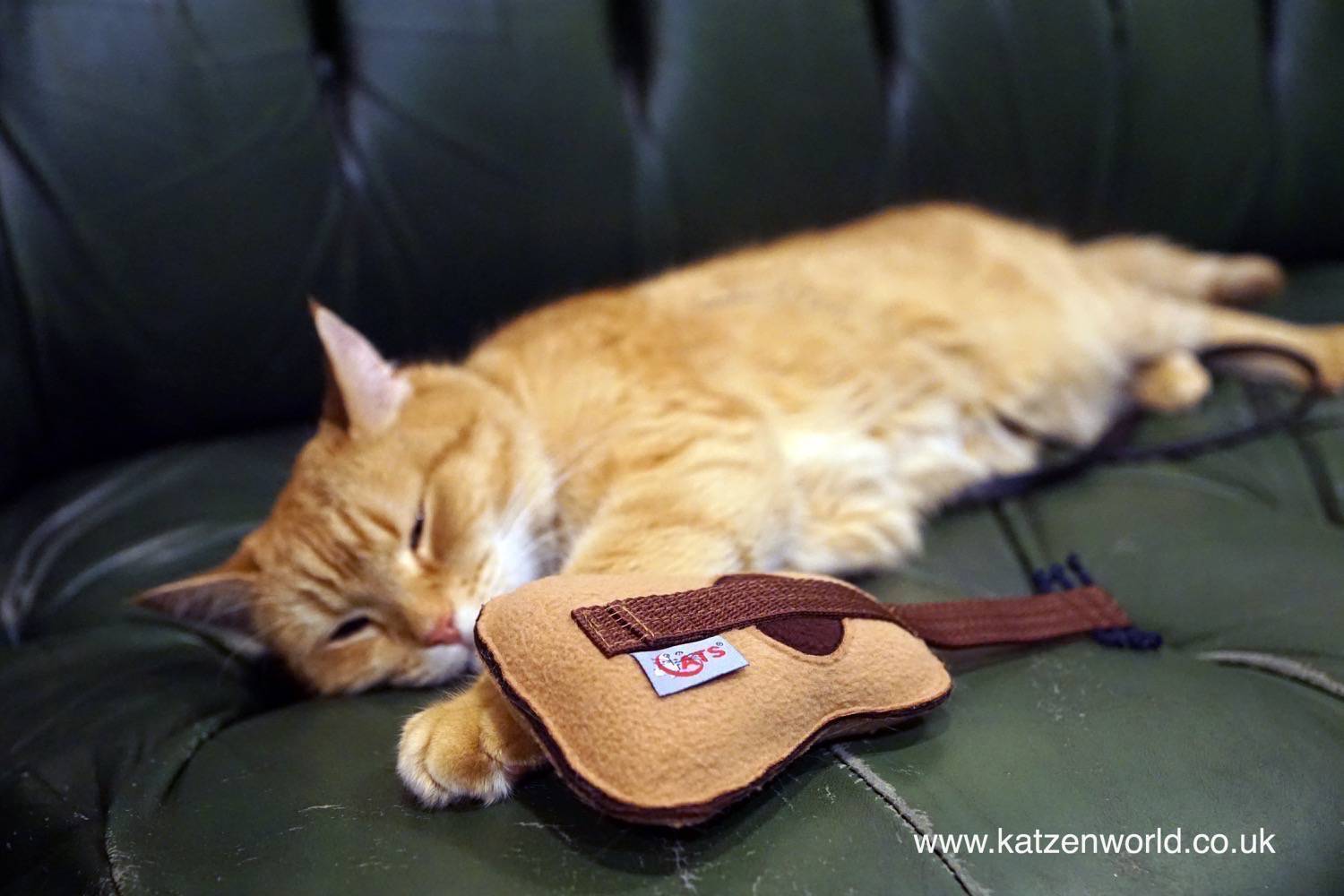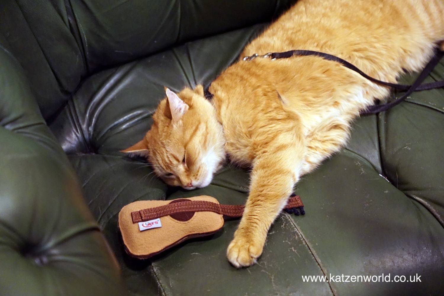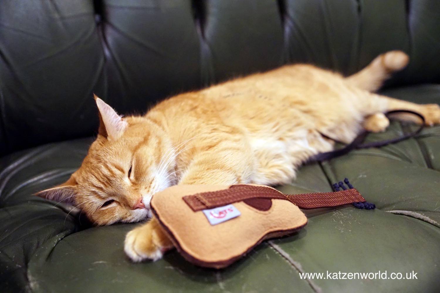 Bob certainly looked a bit tired after the event and he was relaxing on the comfy sofa with some of his 4Cats toys that he received earlier. 😀