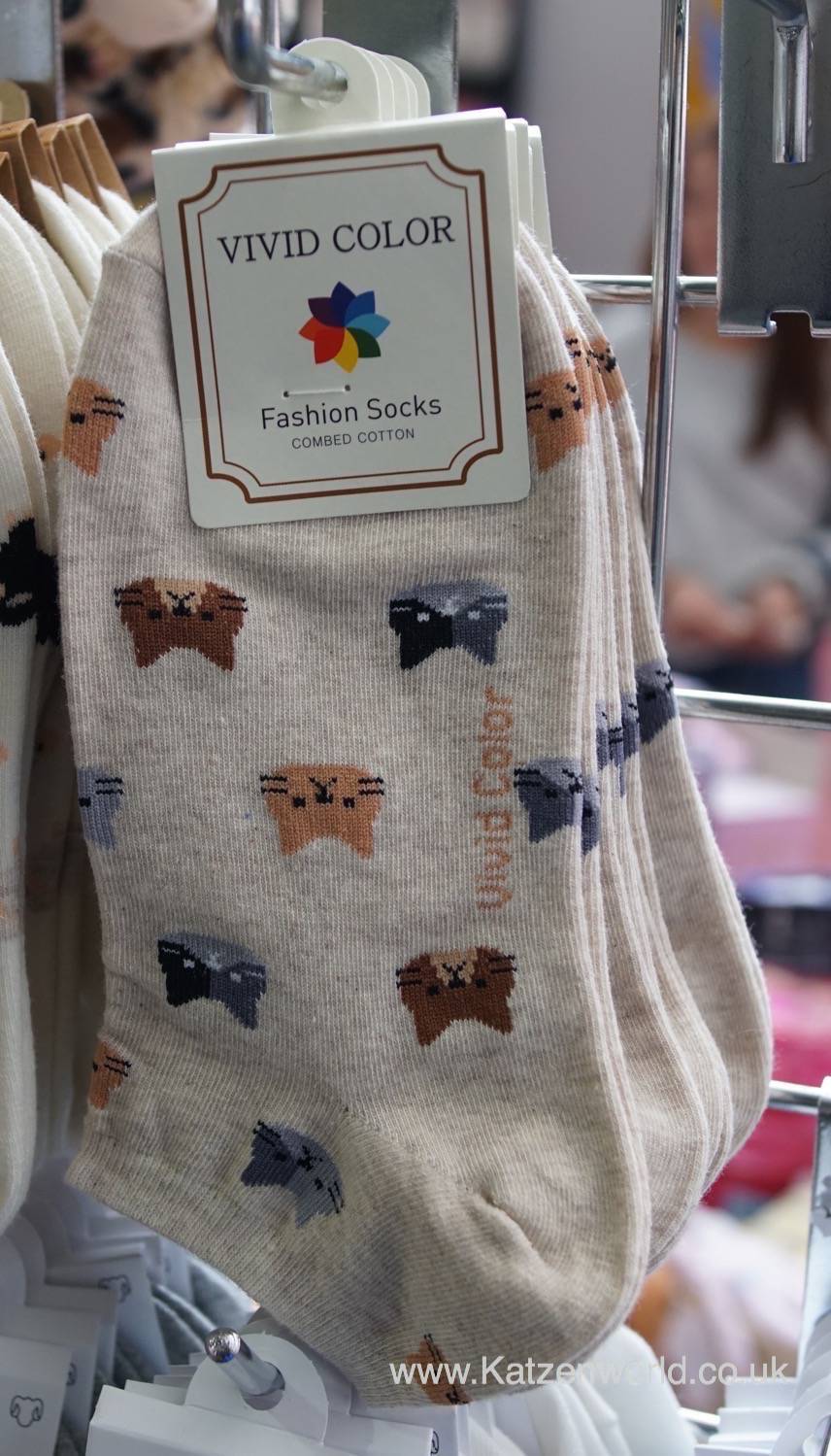 As if cat jewelry and cuddly cute toys wasn’t enough we spotted some cat socks hanging around upside down just like Nubesy. I don’t think my size 10 feet would fit in them but I’m sure if they did they’d look great with my suit at work 🙂