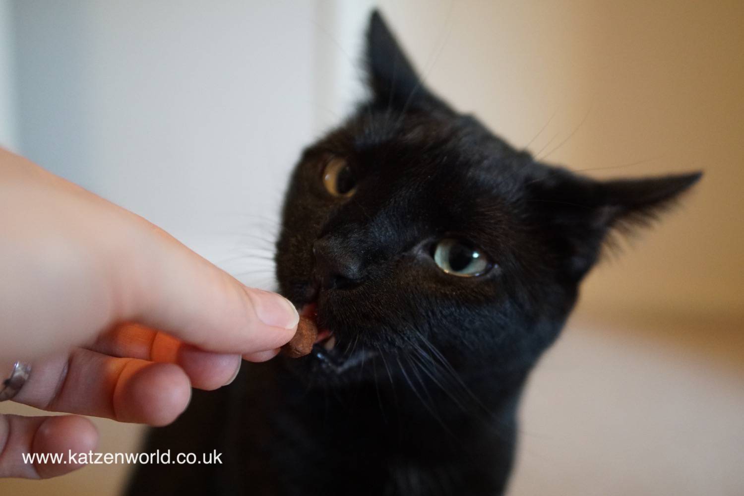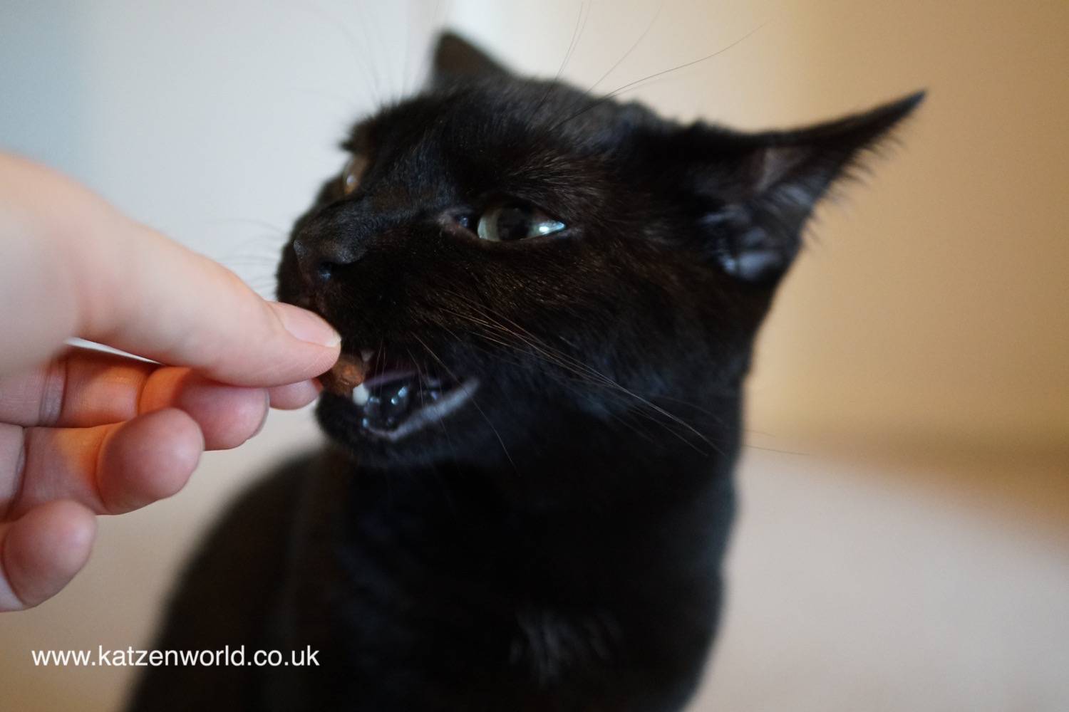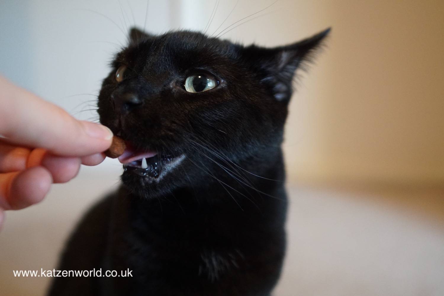 It’s your favourite black cat today! 😀 We got some really nice snacks through the post the other day from Green&Wilds. But of course the humans had to wake me up first…