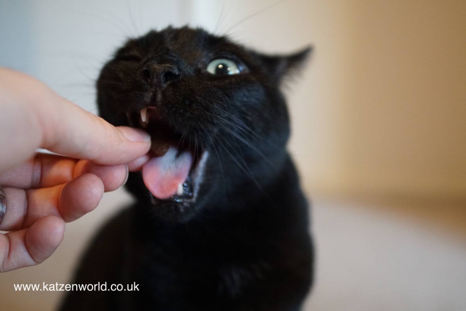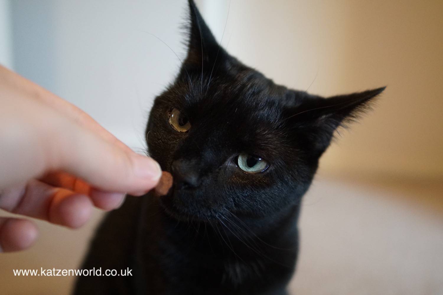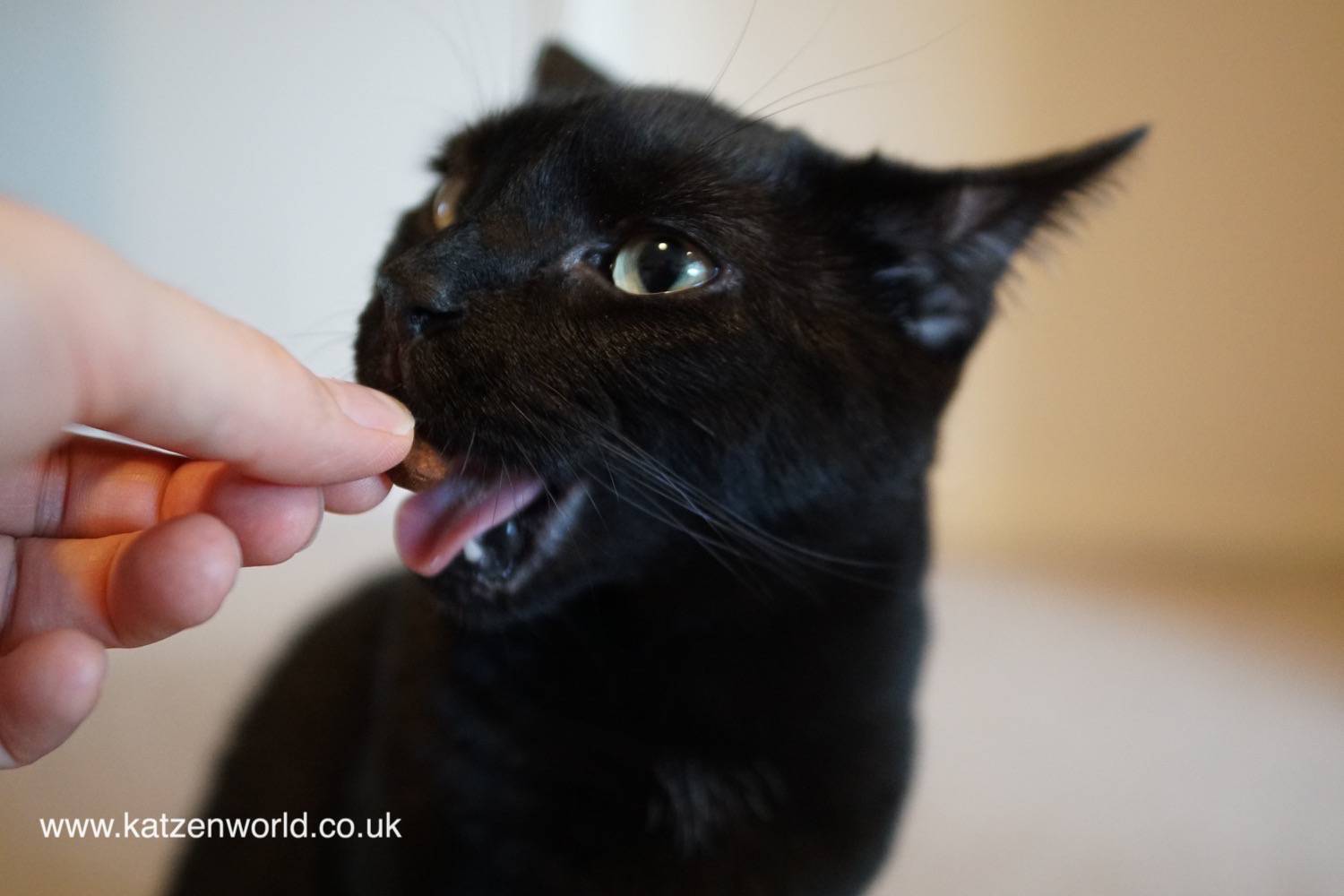 It’s your favourite black cat today! 😀 We got some really nice snacks through the post the other day from Green&Wilds. But of course the humans had to wake me up first…