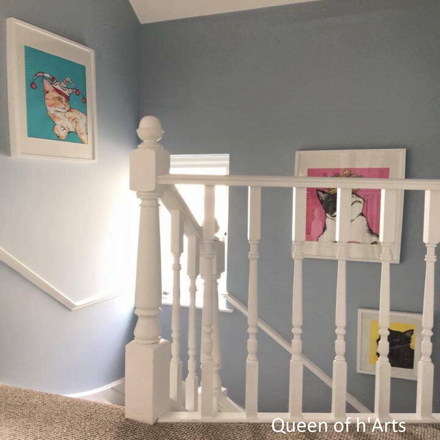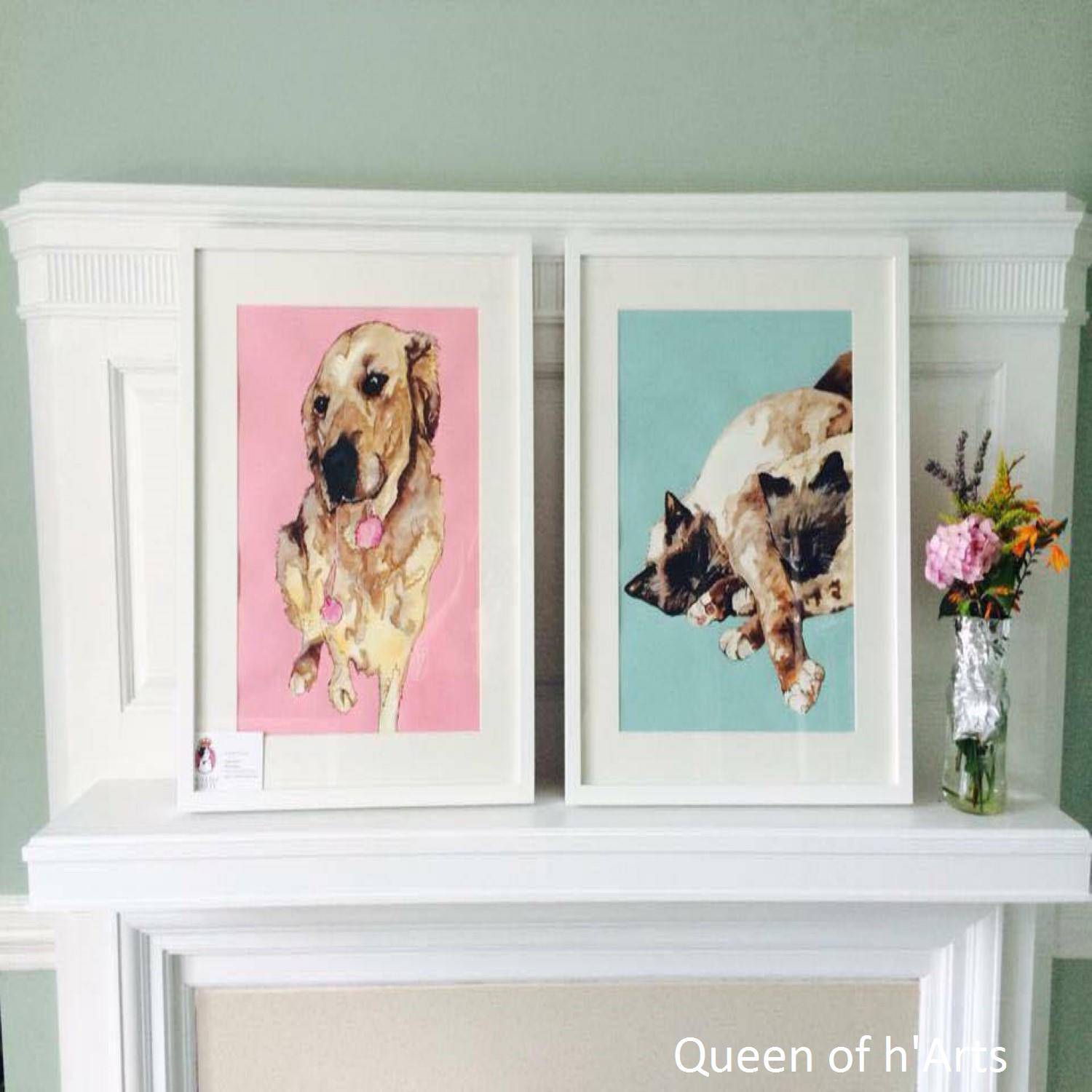 Queen of h’Arts works mainly with acrylic, watercolours, inks and paint pens and sometimes digital painting too. She creates bespoke illustrations, letting customers choose from a range of colours to match their home, or even adding amusing or quirky accessories to capture the character of their pet.