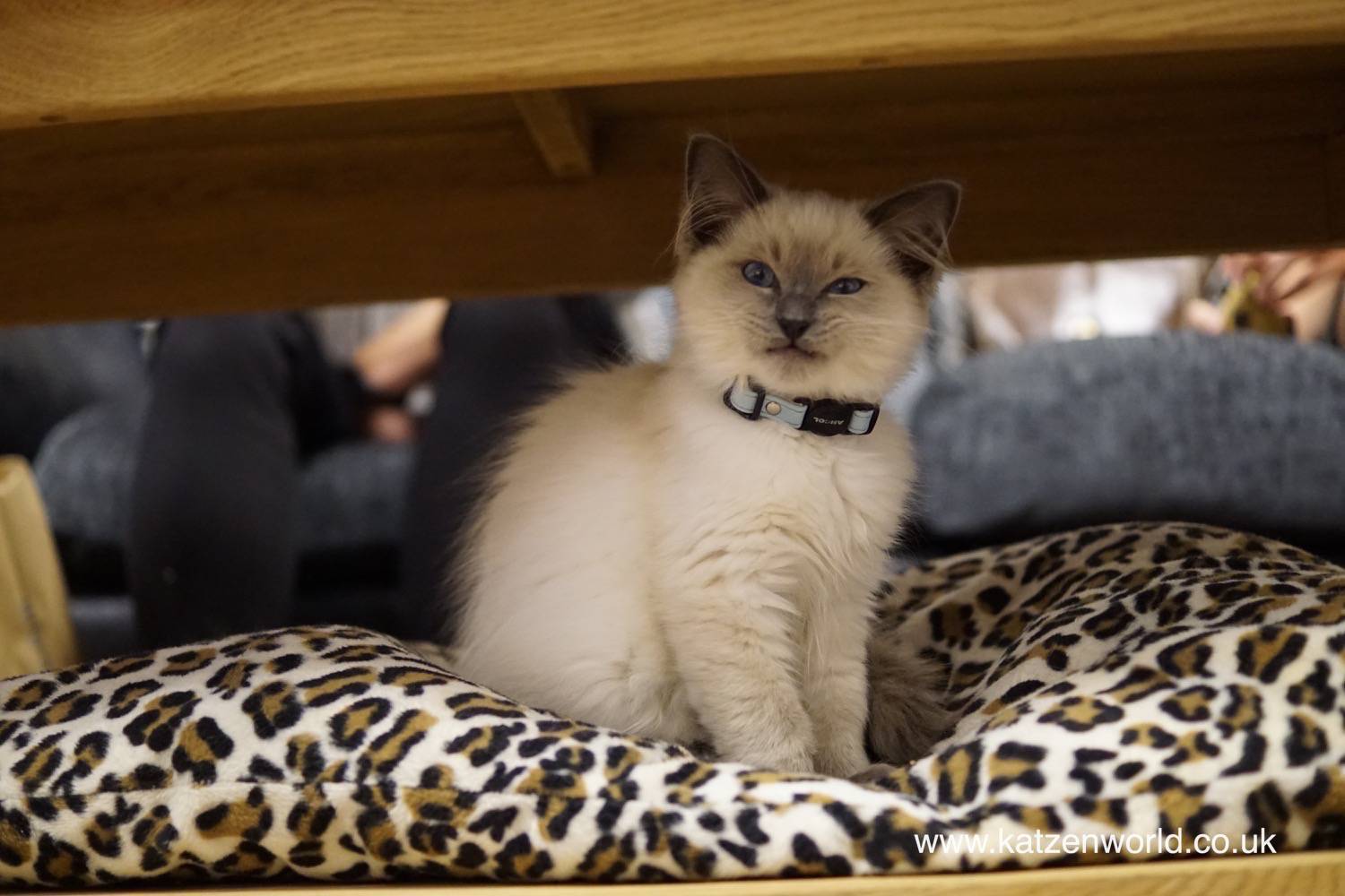 While we were having our lunchtime snack she decided to sit under our table, possibly hoping we’d loose some of our food which was NOT fit for cat consumption!