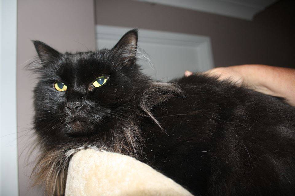 Rufus – Maine Coon, aged 8 was rescued from the local shelter. The shelter told us that he had previously been living with an elderly couple and had to be surrendered. He was beaten with walking sticks by his previous owners.