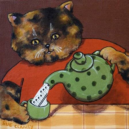 To further reassure The Cat I’ve begun posting some of my art-work in progress on my blog at www.sueclancy.com and intermittently such posts will continue for the next year until the fine art for my cat art exhibit – and the book – are ready for the world. Here is an example of a work-in-progress post: