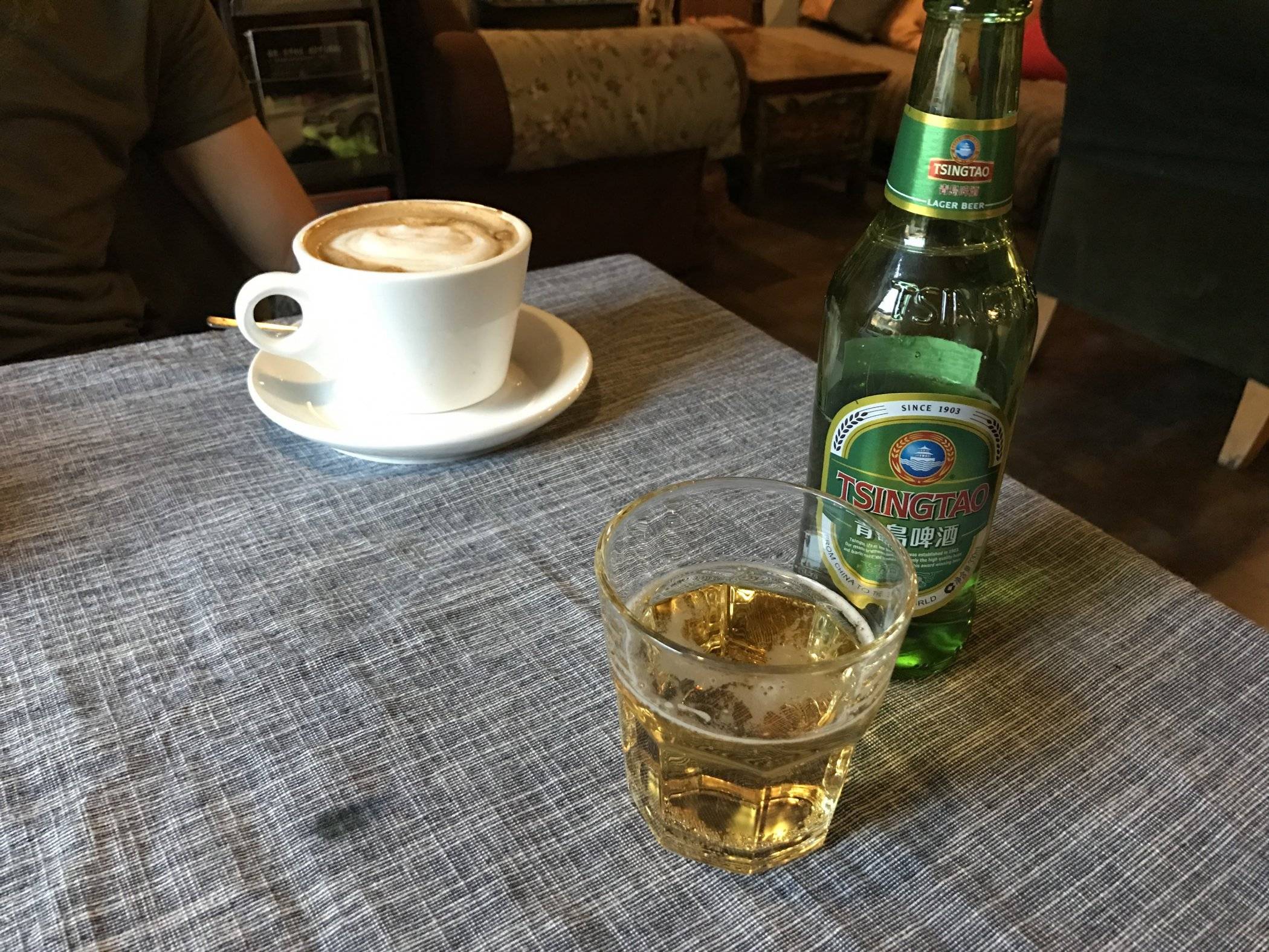 We were greeted promptly and the proprietor was friendly, if not a bit distracted by his phone. After donning surgical booties over our shoes and washing our hands (the first cafe in China that had standards for hygiene), an assistant seated us and took our order for two lattes and a piece of chocolate mousse cake (118 yuan/$17.10). The coffee was nice, but the cake had that been-in-the-fridge-too-long taste.