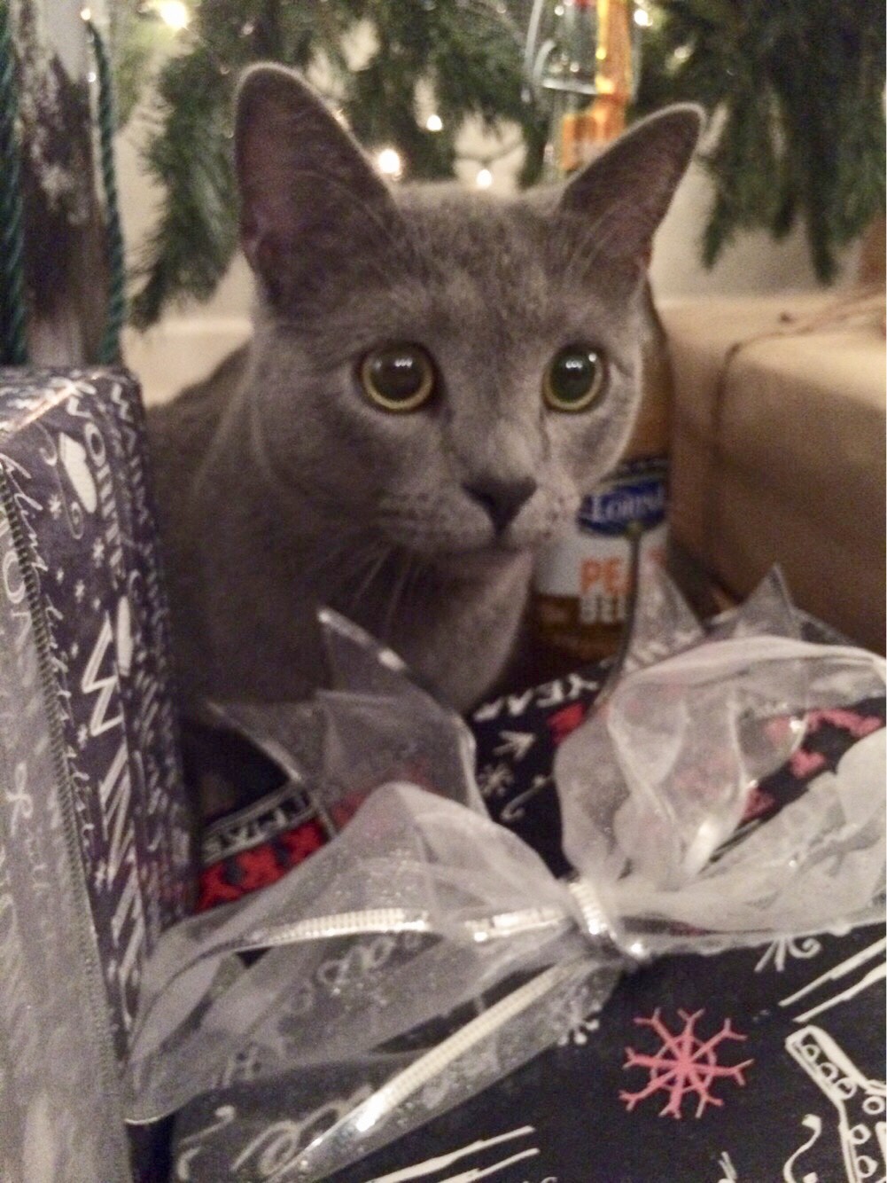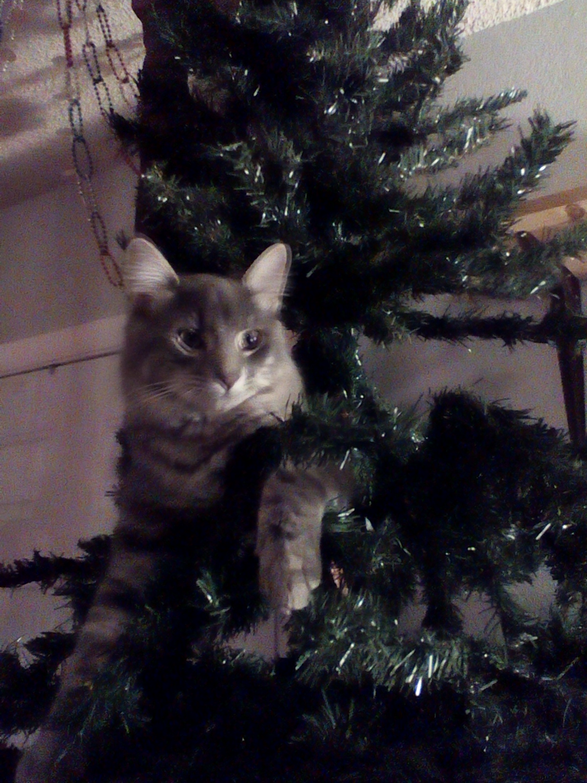 Do you have any pictures of your cats causing havoc in the Christmas tree, or just looking cute while playing with the left overs when all the unwrapping has been done. I know we’d love to see them.