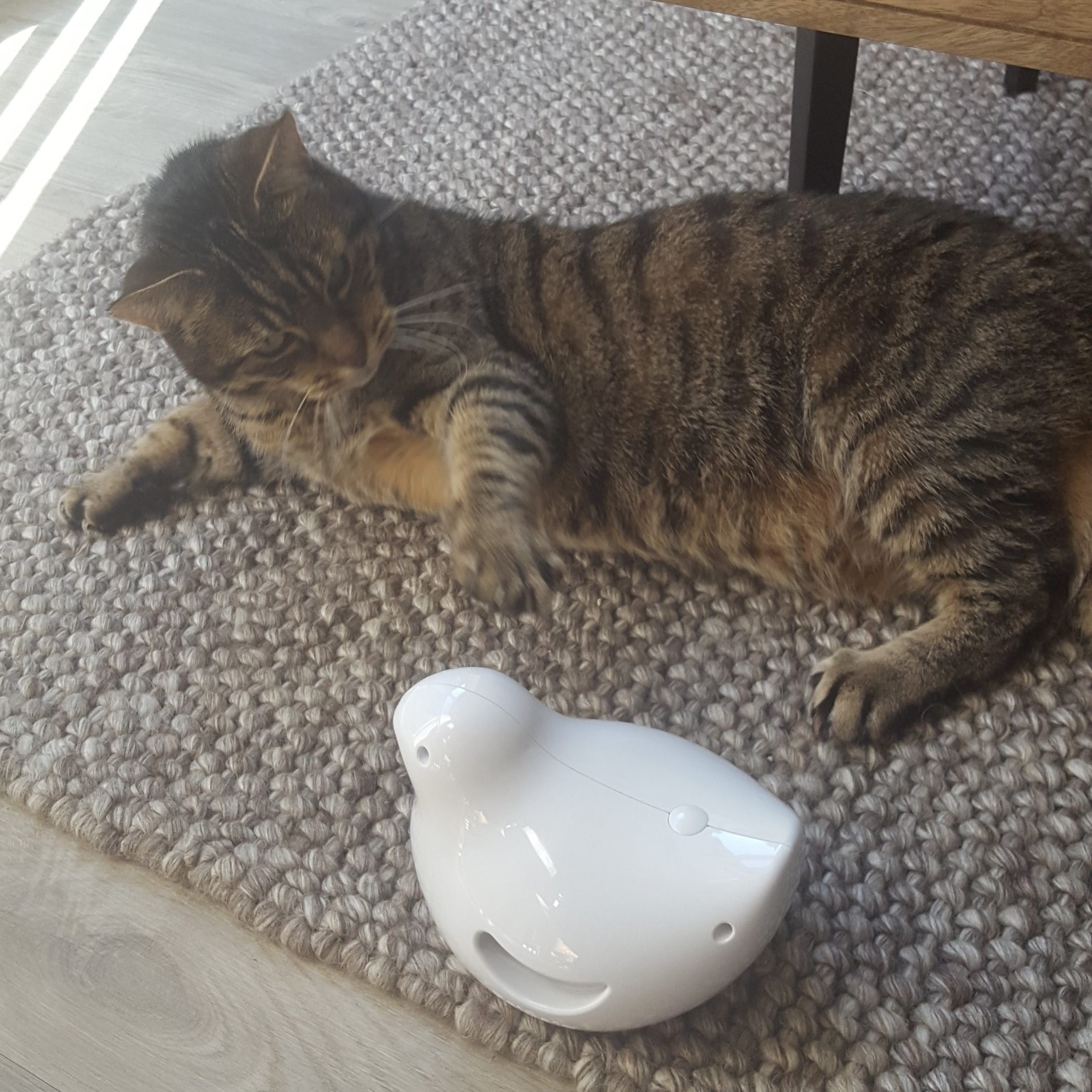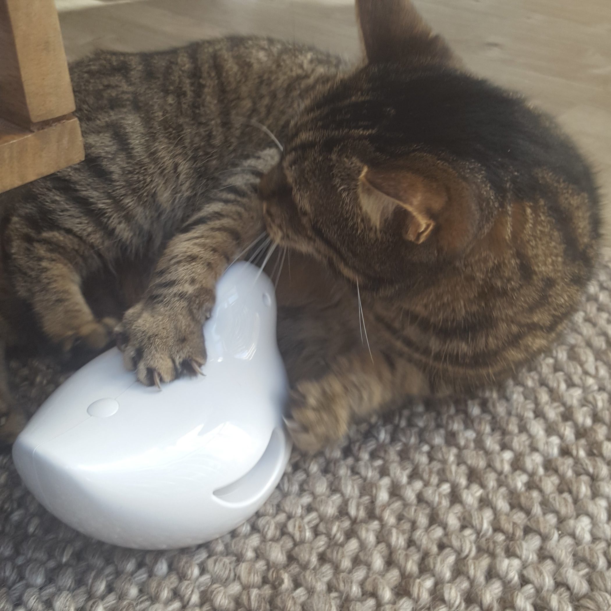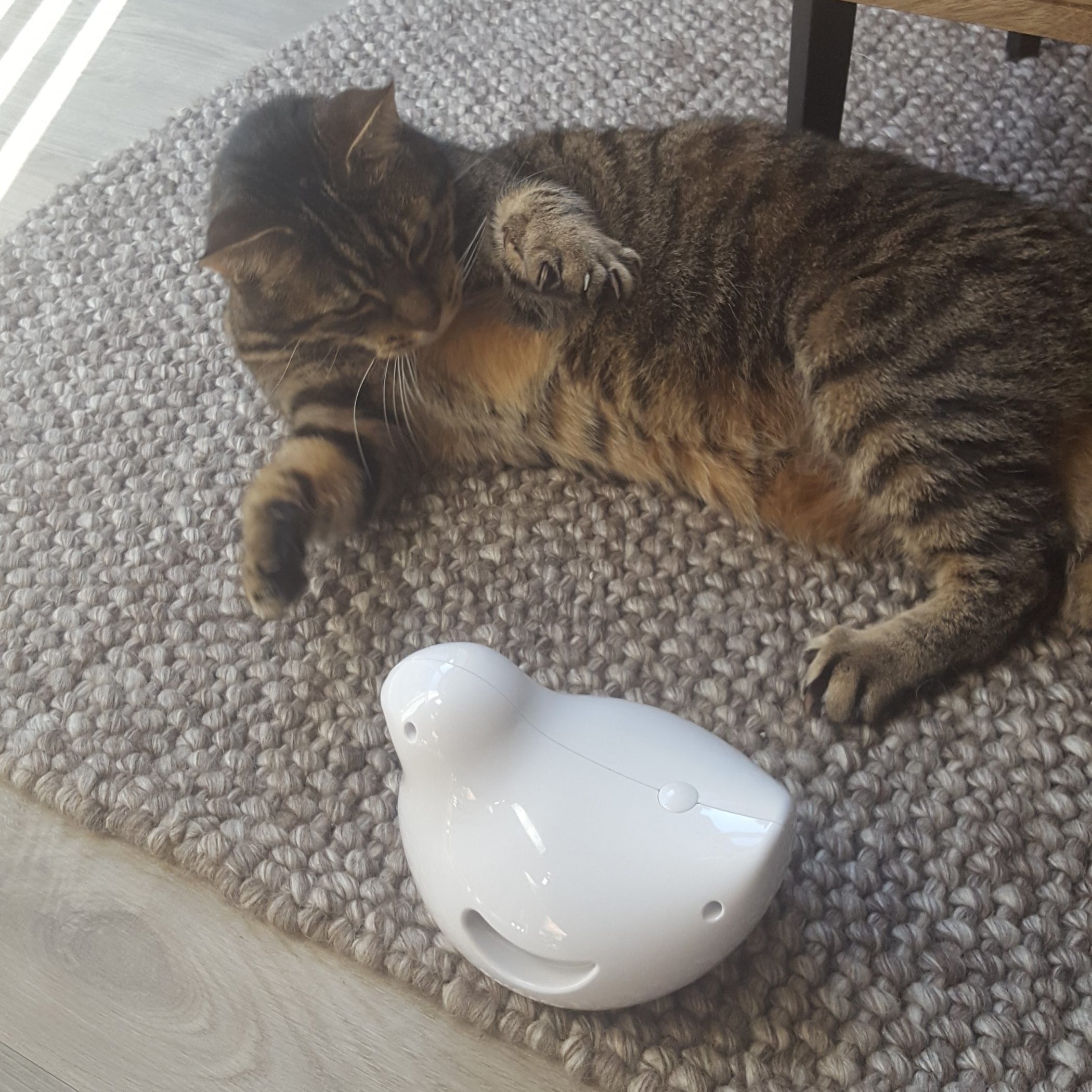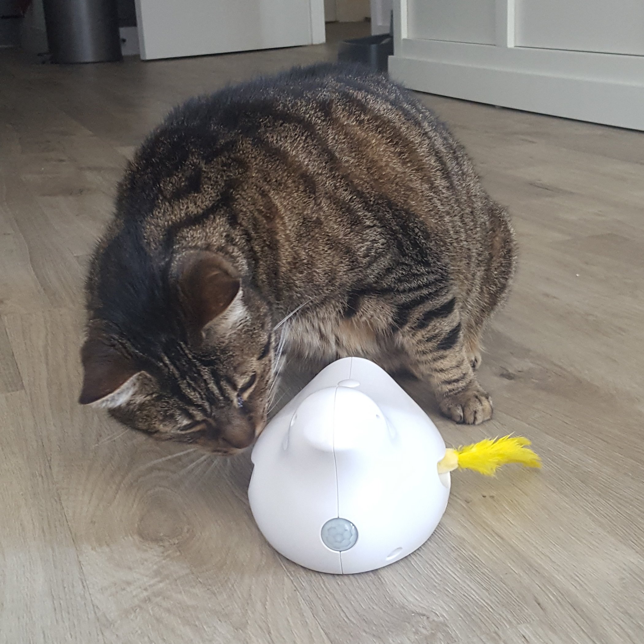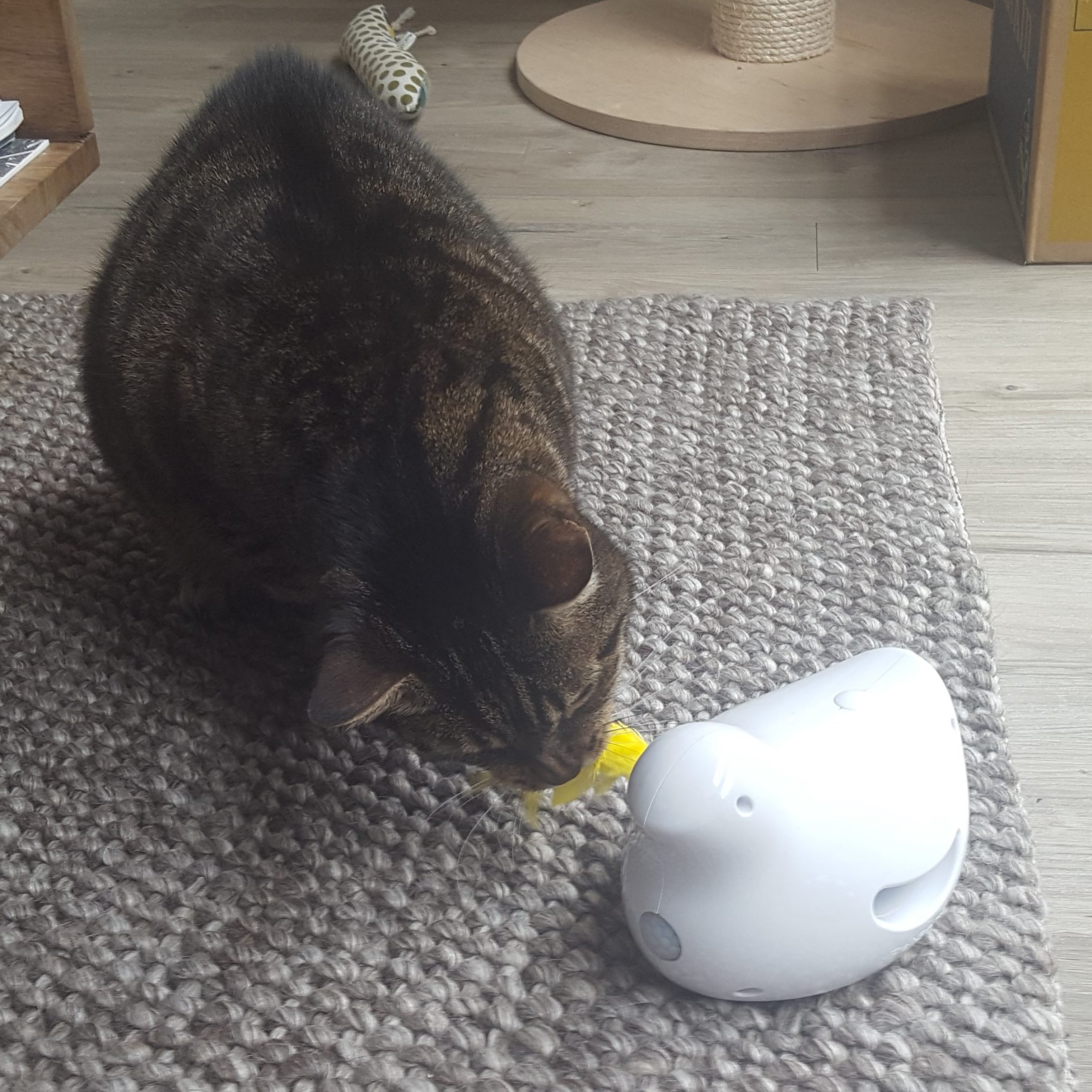 A play session lasts for 10 minutes after which the toy switches off automatically. You can also activate and ‘all day’ mode. The toy then switches on for 10 minutes at a time every two hours. Even better: it also switches on when the sensor picks up movement from your cat. Basically, your cat will have a toy that switches on whenever they want to play! I absolutely love that idea.