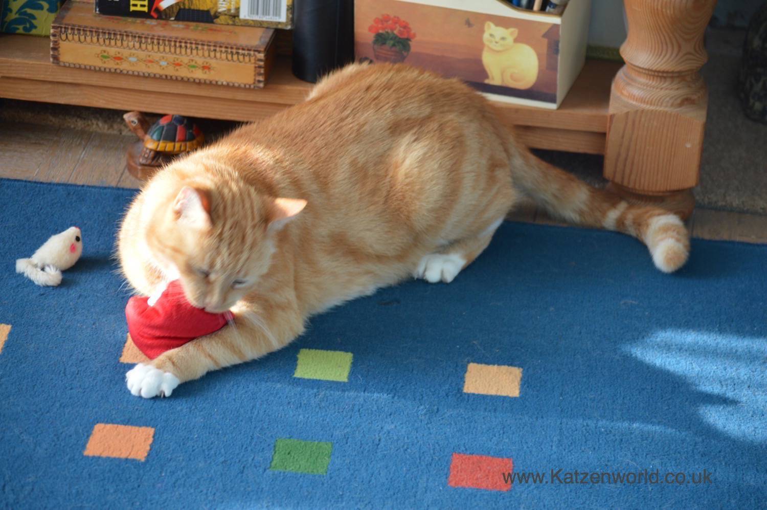 Most cats will cuddle up with the Valerian filled toys, lick them and play passionately with them! You can often see how they rub themselves all over the toys! Some will roll around on the floor and others will chase, kick or chew on the toy.
