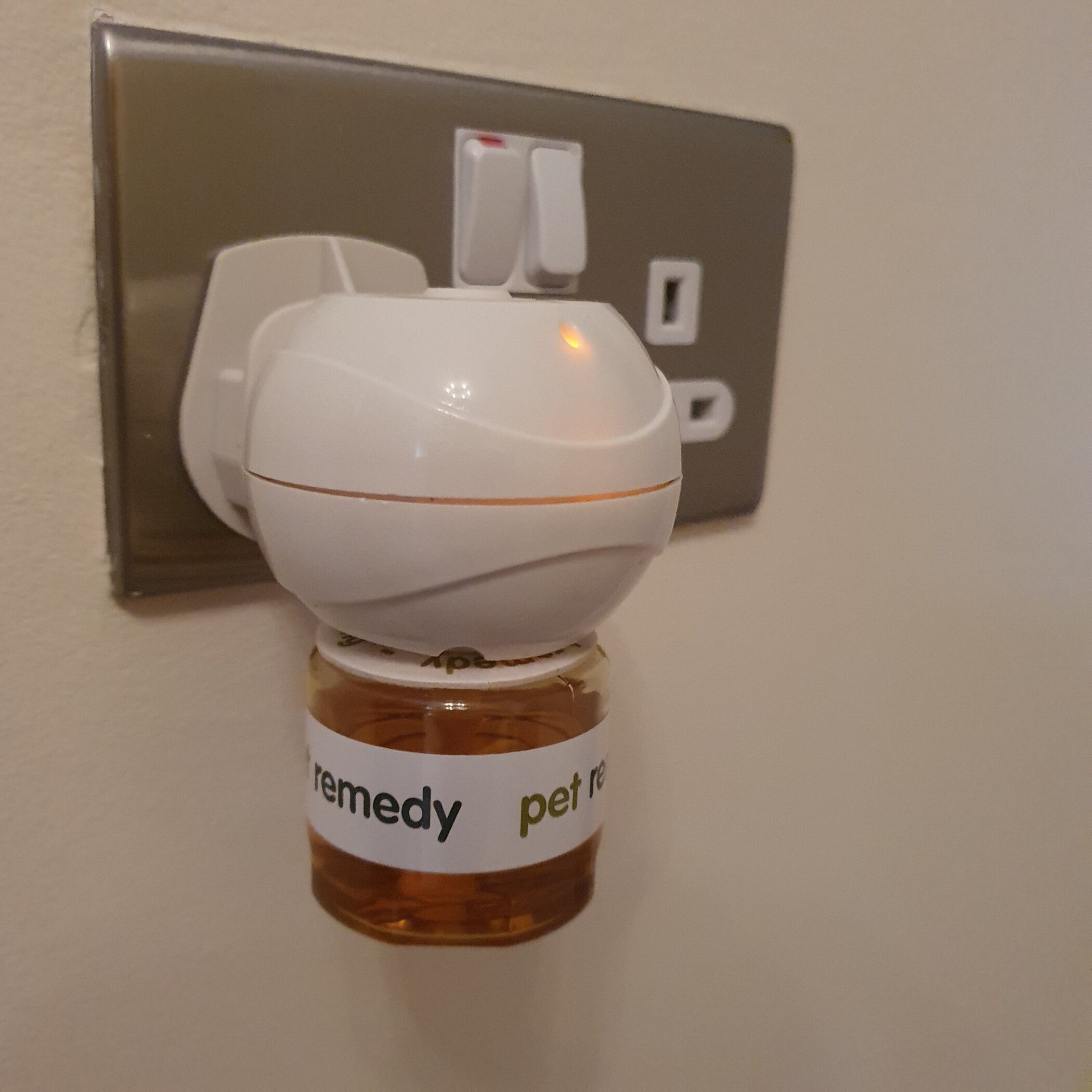 I started out with the diffuser as this works on calming the general atmosphere in the house. The first thing to note is that it gave off a fairly strong smell of valerian. Whether or not you enjoy this scent is personal, but I am not a fan. However, after about 2 or 3 days the scent was not nearly as strong anymore. Before, when I entered the room where the diffuser was the scent would hit me, but after a few days, it was only faintly noticeable. This is certainly a bonus if you are not a fan of valerian: hang in there for 2 or 3 days and things will improve 😉 Plus, if it makes your pet feel calmer than it is really worth persisting. These diffusers work for about two months so they don’t need replacing all that often.